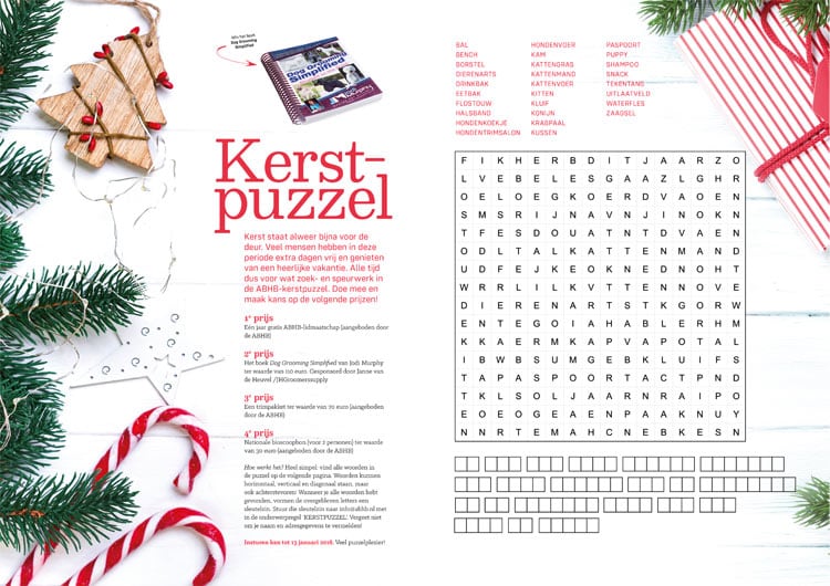 Geweldig om te zien dat een grote groep ABHB-leden tijdens de feestdagen enthousiast aan de slag is gegaan met de kerstpuzzel die in nummer 5/6 van het TrimMagazine stond. We hebben meer dan 50 inzendingen ontvangen. De uitkomst van de kerstpuzzel is: ‘Ik heb dit jaar zoveel geleerd van mijn fouten dat ik overweeg om er volgend jaar nog een paar te maken.’